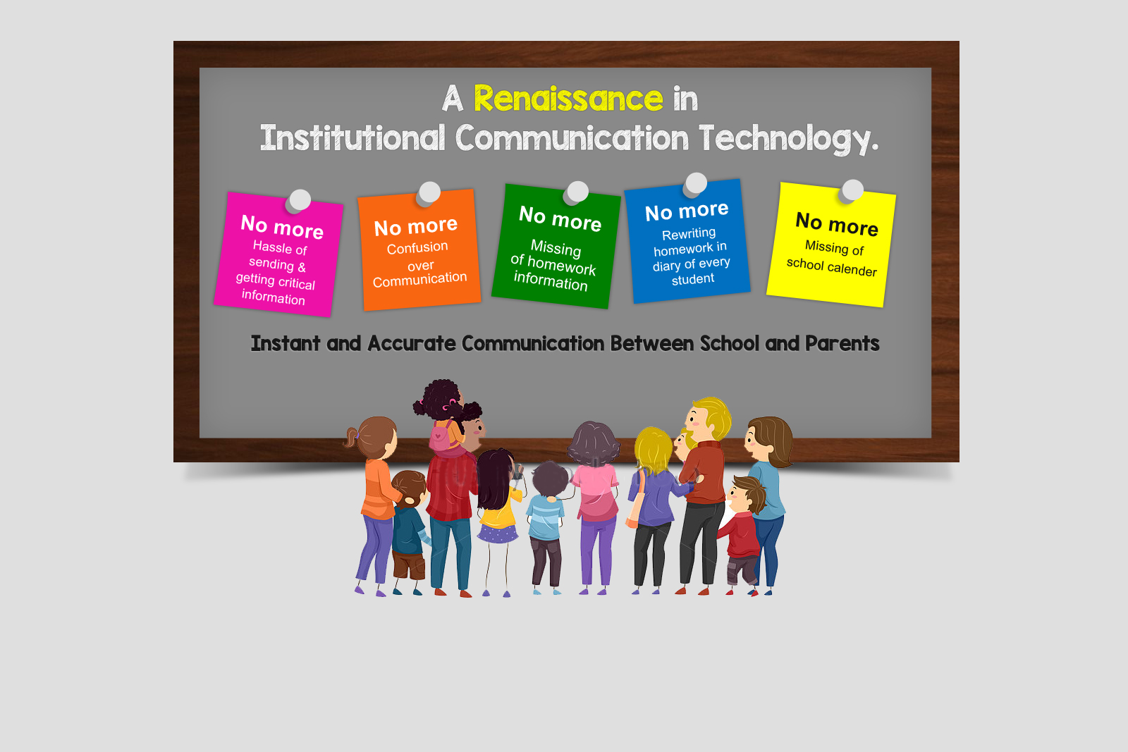 With the entire communication channel being mechanised, SchoolCast+ drastically reduces chances for human errors. This includes daily errors in noting down homework and notice board announcements